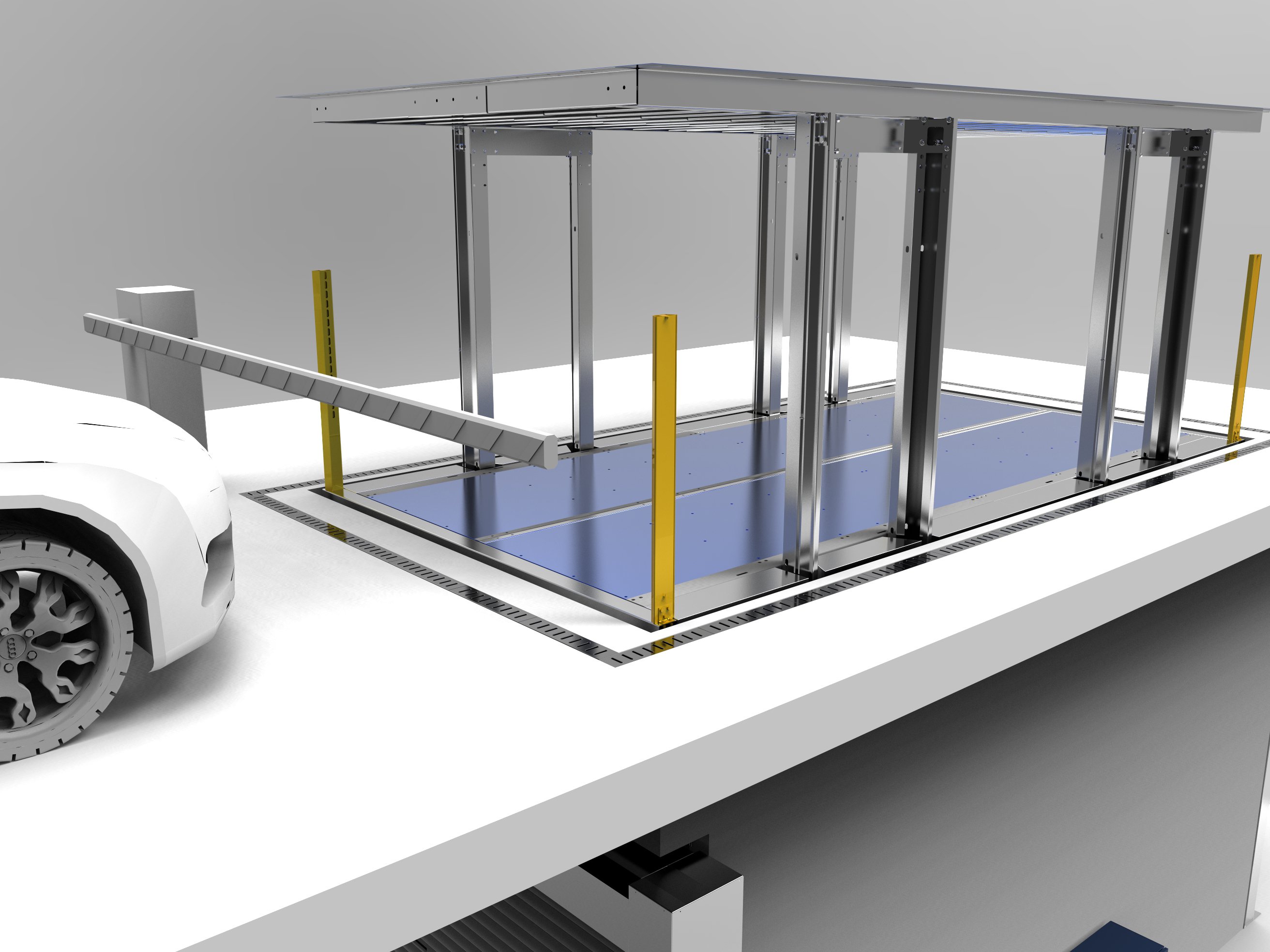 Car lift with an independant movable roofing model TREZ TC 4C R